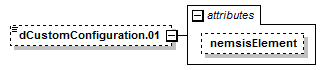| <xs:element id="dCustomConfiguration.dCustomDataElementTitle" minOccurs="0" name="dCustomConfiguration.01"> <xs:complexType> <xs:simpleContent> <xs:attribute name="nemsisElement" type="xs:string" use="optional"/> </xs:extension> </xs:simpleContent> </xs:complexType> </xs:element> |