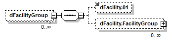 | <xs:element id="dFacility.FacilityGroup" maxOccurs="unbounded" minOccurs="0" name="dFacility.FacilityGroup"> <xs:complexType> <xs:sequence> <xs:element id="dFacility.HospitalDesignation" maxOccurs="unbounded" minOccurs="0" name="dFacility.04"> <xs:complexType> <xs:simpleContent> </xs:simpleContent> </xs:complexType> </xs:element> <xs:element id="dFacility.FacilityNationalProviderIdentifier" maxOccurs="unbounded" minOccurs="0" name="dFacility.05" type="NationalProviderIdentifier"/> <xs:element id="dFacility.FacilityRoomSuiteorApartment" minOccurs="0" name="dFacility.06" type="FacilityRoom"/> <xs:complexType> <xs:simpleContent> </xs:extension> </xs:simpleContent> </xs:complexType> </xs:element> <xs:element id="dFacility.FacilityCountry" minOccurs="0" name="dFacility.12" type="ANSICountryCodesCAMXUS"/> <xs:element id="dFacility.FacilityGPSLocation" minOccurs="0" name="dFacility.13" type="GPSLocation"/> <xs:element id="dFacility.FacilityUSNationalGridCoordinates" minOccurs="0" name="dFacility.14" type="USNG"/> <xs:element id="dPatient.FacilityPhoneNumber" maxOccurs="unbounded" minOccurs="0" name="dFacility.15"> <xs:complexType> <xs:simpleContent> </xs:extension> </xs:simpleContent> </xs:complexType> </xs:element> </xs:sequence> </xs:complexType> </xs:element> |