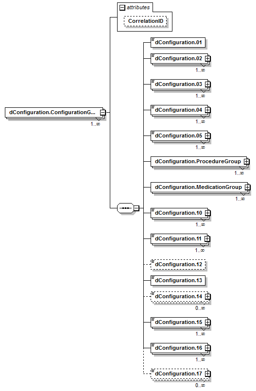 dConfiguration.01, dConfiguration.02+, dConfiguration.03+, dConfiguration.04+, dConfiguration.05+, dConfiguration.ProcedureGroup+, dConfiguration.MedicationGroup+, dConfiguration.10+, dConfiguration.11+, dConfiguration.12?, dConfiguration.13, dConfiguration.14*, dConfiguration.15+, dConfiguration.16+, dConfiguration.17*