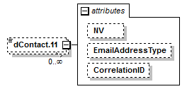 | <xs:element id="dContact.AgencyContactEmailAddress" maxOccurs="unbounded" minOccurs="0" name="dContact.11" nillable="true"> <xs:complexType> <xs:simpleContent> <xs:simpleType> </xs:simpleType> </xs:attribute> </xs:extension> </xs:simpleContent> </xs:complexType> </xs:element> |