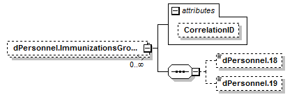 | <xs:element id="dPersonnel.PersonnelImmunizationsGroup" maxOccurs="unbounded" minOccurs="0" name="dPersonnel.ImmunizationsGroup"> <xs:complexType> <xs:sequence> <xs:element id="dPersonnel.EMSPersonnelsImmunizationStatus" minOccurs="0" name="dPersonnel.18" type="ImmunizationType"/> <xs:element id="dPersonnel.EMSPersonnelsImmunizationYear" minOccurs="0" name="dPersonnel.19" type="Year"/> </xs:sequence> </xs:complexType> </xs:element> |