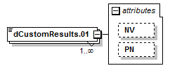 | <xs:element id="dCustomConfiguration.dCustomDataElementResult" maxOccurs="unbounded" minOccurs="1" name="dCustomResults.01" nillable="true"> <xs:complexType> <xs:simpleContent> <xs:attribute name="NV" type="NV" use="optional"/> <xs:attribute name="PN" type="PN" use="optional"/> </xs:extension> </xs:simpleContent> </xs:complexType> </xs:element> |