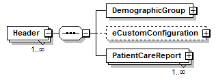 | <xs:element id="HeaderGroup" maxOccurs="unbounded" name="Header"> <xs:complexType> <xs:sequence> <xs:complexType> <xs:sequence> <xs:complexType> <xs:simpleContent> </xs:simpleContent> </xs:complexType> </xs:element> <xs:complexType> <xs:simpleContent> </xs:simpleContent> </xs:complexType> </xs:element> </xs:sequence> </xs:complexType> </xs:element> <xs:element id="eCustomConfigurationSection" minOccurs="0" name="eCustomConfiguration" type="eCustomConfiguration"/> <xs:complexType> <xs:sequence> </xs:sequence> <!--<xs:attribute name="RecordStatus" type="RecordStatus" use="optional"/> <xs:attribute name="CorrelationID" type="CorrelationID" use="optional"/>--> </xs:complexType> </xs:element> </xs:sequence> </xs:complexType> </xs:element> |