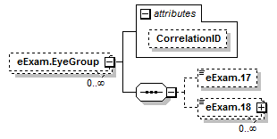 | <xs:element id="eExam.EyeGroup" maxOccurs="unbounded" minOccurs="0" name="eExam.EyeGroup"> <xs:complexType> <xs:sequence> <xs:element id="eExam.EyeAssessment" maxOccurs="unbounded" minOccurs="0" name="eExam.18"> <xs:complexType> <xs:simpleContent> <xs:attribute name="PN" use="optional"> <xs:simpleType> </xs:simpleType> </xs:attribute> </xs:extension> </xs:simpleContent> </xs:complexType> </xs:element> </xs:sequence> </xs:complexType> </xs:element> |