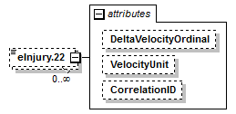 | <xs:element id="eInjury.ACNIncidentDeltaVelocity" maxOccurs="unbounded" minOccurs="0" name="eInjury.22"> <xs:complexType> <xs:simpleContent> </xs:extension> </xs:simpleContent> </xs:complexType> </xs:element> |
