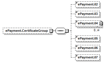 | <xs:element id="ePayment.CertificateGroup" minOccurs="0" name="ePayment.CertificateGroup"> <xs:complexType> <xs:sequence> <xs:element id="ePayment.PhysicianCertificationStatement" minOccurs="0" name="ePayment.02" type="YesNoUnkValues"/> <xs:element id="ePayment.DatePhysicianCertificationStatementSigned" minOccurs="0" name="ePayment.03" type="DateTimeType"/> <xs:element id="ePayment.ReasonforPhysicianCertificationStatement" maxOccurs="unbounded" minOccurs="0" name="ePayment.04"> <xs:complexType> <xs:simpleContent> </xs:extension> </xs:simpleContent> </xs:complexType> </xs:element> <xs:element id="ePayment.HealthcareProviderTypeSigningPhysicianCertificationStatement" minOccurs="0" name="ePayment.05" type="HealthcareProviderType"/> <xs:element id="ePayment.LastNameofIndividualSigningPhysicianCertificationStatement" minOccurs="0" name="ePayment.06" type="PersonLastName"/> <xs:element id="ePayment.FirstNameofIndividualSigningPhysicianCertificationStatement" minOccurs="0" name="ePayment.07" type="PersonFirstName"/> </xs:sequence> </xs:complexType> </xs:element> |