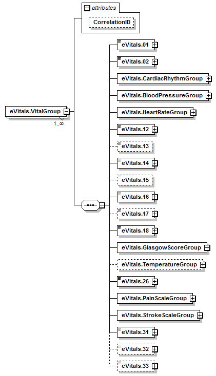 eVitals.01, eVitals.02, eVitals.CardiacRhythmGroup, eVitals.BloodPressureGroup, eVitals.HeartRateGroup, eVitals.12, eVitals.13?, eVitals.14, eVitals.15?, eVitals.16, eVitals.17?, eVitals.18, eVitals.GlasgowScoreGroup, eVitals.TemperatureGroup?, eVitals.26, eVitals.PainScaleGroup, eVitals.StrokeScaleGroup, eVitals.31, eVitals.32?, eVitals.33?